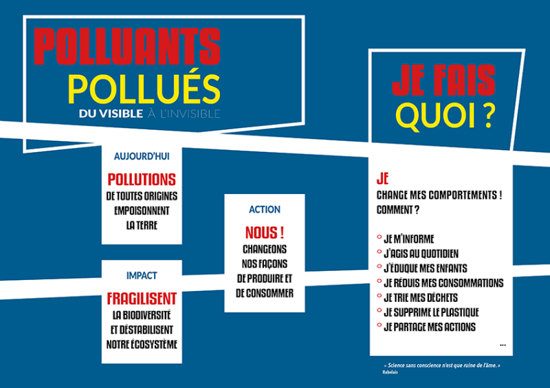 La conception de ce projet est de montrer une pollution, d'en faire un court descriptif et de proposer une action citoyenne qui peut être réalisée par chacun d'entre nous. Soit en se rapprochant d'associations actives qui proposent des solutions, soit en se connectant à une communauté impliquée sur les réseaux sociaux.